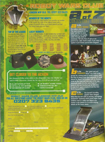 - ↑ Robot Wars Magazine, Issue 1, page 12