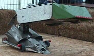 Ally Gator consisted of a low green and silver box-shaped robot themed around an alligator, featuring 6mm aluminium armour, four-wheel drive, a pair of serrated strips along the top panel and a front ramming wedge. The wedge was designed to get underneath other robots, allowing them to be caught by the serrated strips and to be pushed around by Ally Gator without being able to drive off and escape. Spikes were also fitted to the front wedge and rear end in order to cause additional damage, while a toy alligator was also put on top of Ally Gator for both its battles, surviving with only a gash from Dead Metal's saw. The robot had go-kart wheels, sourced from Richborough Racing, and motors from Motobility in Margate. The robot took three months to build, at a cost of £600[1].