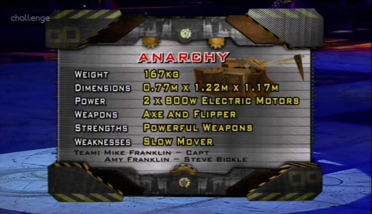 - "And that was a good attack by Anarchy, a brilliantly-designed robot by Mike Franklin!"