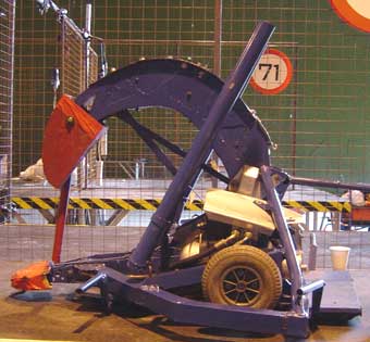 | Vortex Inducer | Dutch Series 2 | Two drive pods with partially-exposed top sections; located on either side of an arm with a horizontally or vertically-rotating disc. | Original tracked system replaced with conventional wheels to save weight; Pits photos indicate that the robot was at one point fitted with transparent side panels as well. | |
