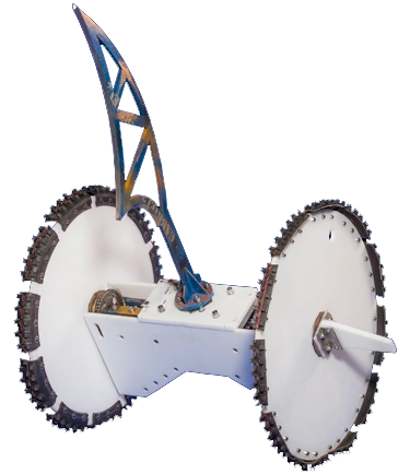 What little base an axlebot has is built around the robot's axle, hence the name. The size of the base can be reduced to virtually nothing by housing the electronics inside the robot's wheels, as famously shown by The Master and Stinger. Alternatively, most designs incorporate their internals into a compact chassis and body which effectively forms the axle; examples include S3, PulverizeR and Kill-E-Crank-E.