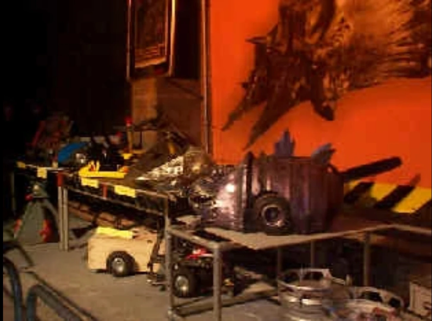 Bang left its corner as soon as it was tagged by Snookums, and dodged G-Force's charge before driving towards it and being momentarily lifted and pushed away by G-Force. Sir Force A Lot slammed into Bang's side with its blades, and Bang spun in circles over the Flame Pit before meeting Sir Force A Lot again and being pushed back. At this point, Bang was left immobilized as its right-hand tire became badly damaged, before it was positioned onto - and away from - the Floor Flipper by Sir Killalot. Both Sir Force A Lot and G-Force rammed Bang again, before G-Force pushed it into the wall and Shunt while axing it. Shunt axed and lifted Bang in his CPZ, before Sir Force A Lot pushed it across the arena and into the Pit, where Bang was soon joined by Snookums. This eliminated both robots from the Tag Team Terror competition.