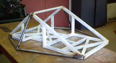 Bisyamonten was a double wedge-shaped robot armoured in Kevlar, and featuring a crushing claw and a rear-hinged flipper as its weapons. A large mock-up of the robot suggested that it was intended to be painted black and red, with the robot’s name written on the top panel in English, 'Bishamonten' written on the sides in kanji, and a small white icon depicting Bishamonten on the flipper. Bisyamonten’s colour scheme was presumably chosen to reflect the aesthetics of samurai armour, adding to the robot’s theme.