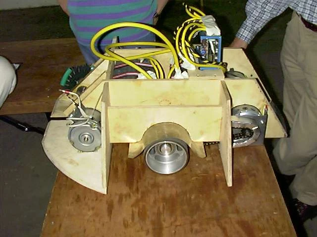 - "We had problems from the start. Our weapon (a hammer) never worked so we cut it off and fixed the base as a twin pronged steel spike. The motors we used worked well but the gearbox outputs were a weak point that kept me busy. In fact I think one of the shafts had gone in the early rounds and it wasn't until The Arena that the robot was working to its full potential."