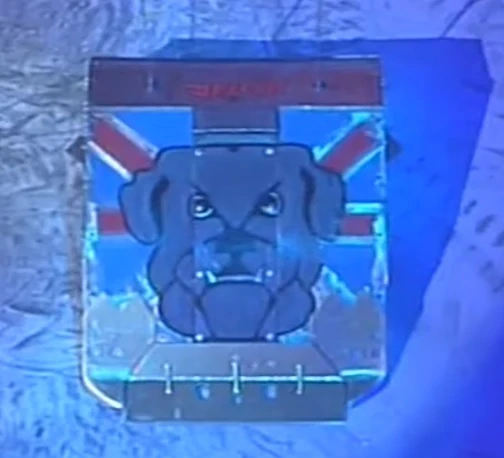 Bulldog Breed 3 was less than half the height of its predecessors, at only 32cm tall. It changed from the Chaos 2 style triangle dual wedge to a Firestorm-style long wedge with rounded back, once again keeping the electronics visible through clear polycarbonate. The muscular bulldog character remained as the mascot, now in a flexing position with more of its design being visible. The Union Jack livery still remained painted on its front and top.