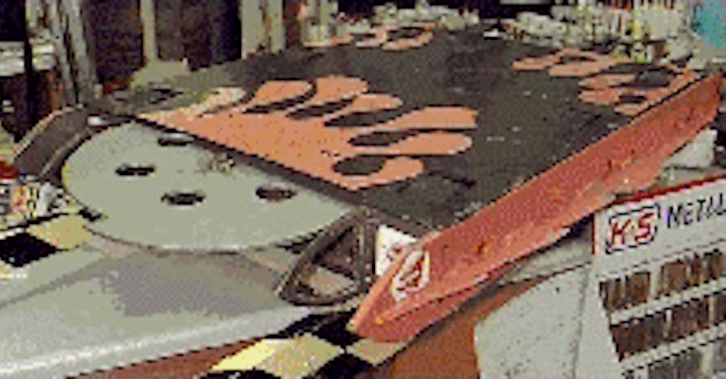 CanOpener was a technically-complex heavyweight, with eight-wheel drive, four 800W electric motors running at 24 volts, and a flat, invertible design. The robot was armed with a large 17-inch flywheel - specified as weighing between 10 and 15kg - and a ramming spike on either end, though the overall effectiveness of these is unknown. CanOpener featured a black and red paint scheme, with the top panel featuring three red splatter patterns. An early working name for the machine was Road Kill, which was changed some time before the qualifiers.[2]