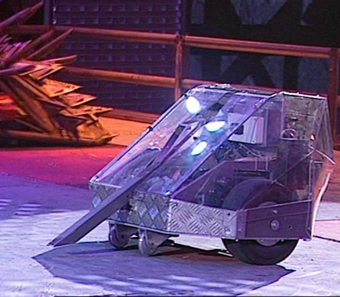 - "It's main problems were lack of power in the flipper (bore of valves & pipework too small), tipping forwards when flipping (front wheels not far enough forwards) and difficulty in getting the weapon under the opposition (flipper too narrow, or driver not good enough, or both!) It was powered by 2 Sinclair C5 motors, it was fast, manouverable and powerful, it's just the weapon that didn't work as planned!"