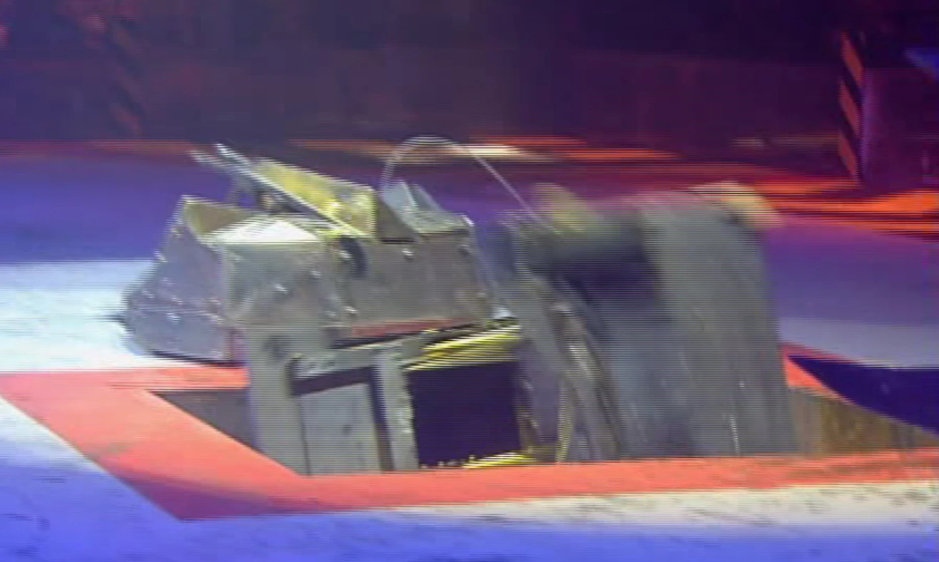 It immediately yanked the chain, overpowering Dead Metal's pull and dragging him steadily towards the Pit as the House Robot swerved and attempted to hang on. Eventually, Dead Metal hung over the edge, and with one final tug, Chaos successfully pulled him down.