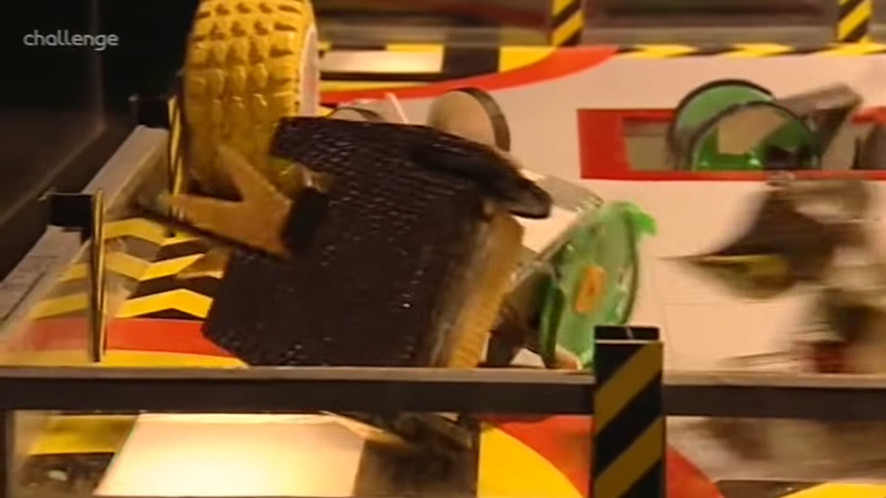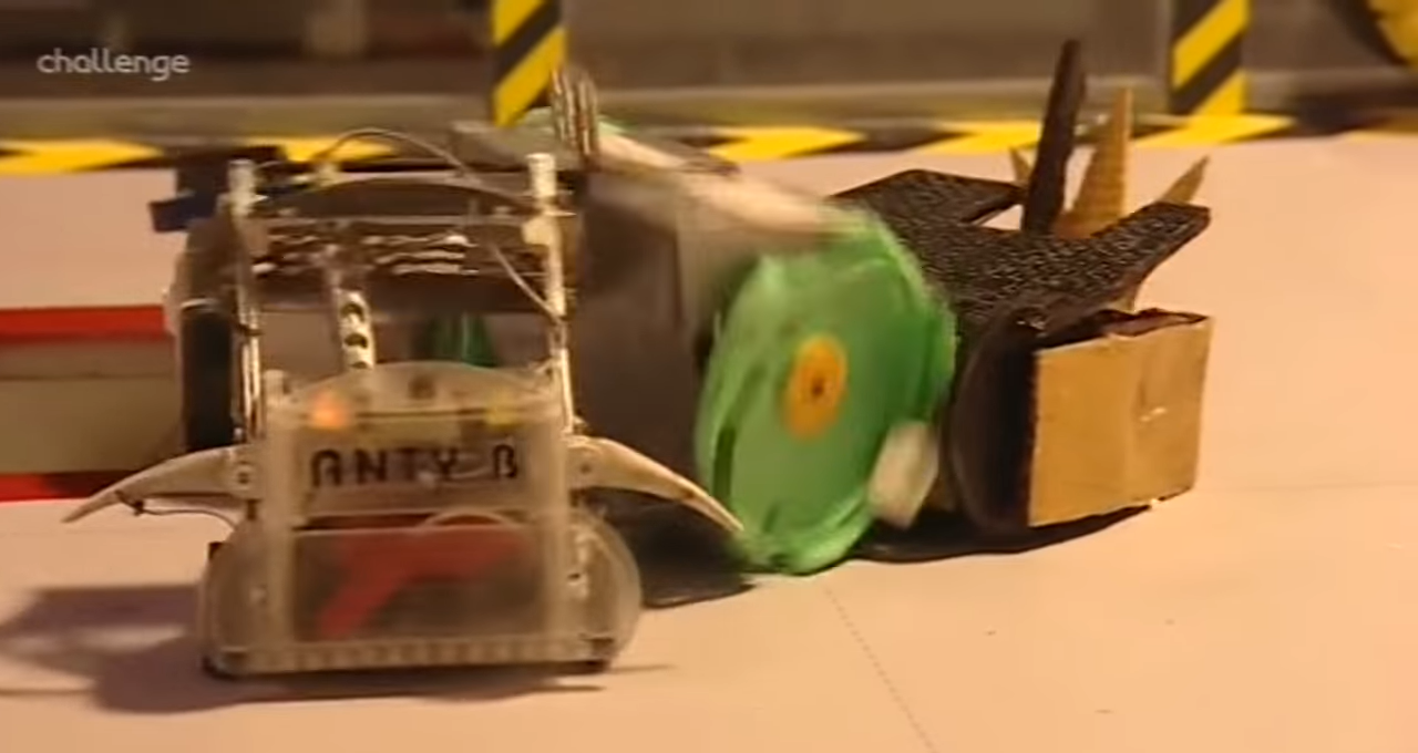 Some time later, Chroma lifted Anty Geddon, getting its flipper lodged through one of its wheel spacings in the process. It was then hit by a flying Combatant, which had rejoined the battle following its earlier pitting, before it and Anty Geddon were lifted near the wall and turned over simultaneously by Anty B. This left Chroma on its side, where it was left stranded after Anty B prevented it from rolling over as the two competitors became separated. Chroma was pushed towards the pit by Anty B, and left spinning on its side near an already-pitted Hades, evidently unable to right itself from that position. As a result, both robots lost the heat, and were eliminated from the Antweight Championship.