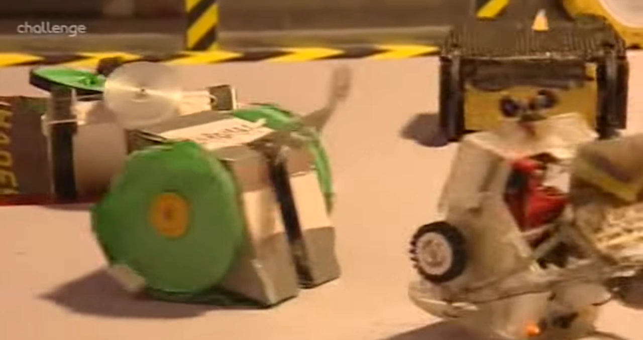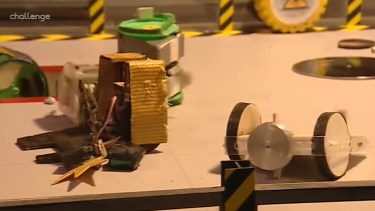 Chroma started by driving towards the centre of the arena and spinning round, knocking Mesmer 2 onto its side as it reversed. It was immediately lifted onto one wheel by Combatant's spinner, before being flung across the arena by a second attack from the latter. Anty B proceeded to push Chroma back, with Chroma lifting itself over and driving around the arena on its back for some time, eventually helping Anty Geddon push Combatant into the pit. As it did so, it was knocked back upright by a shove from Anty B, and proceeded to flip Anty B twice before being pushed by the latter again, all while its wheels became increasingly buckled.