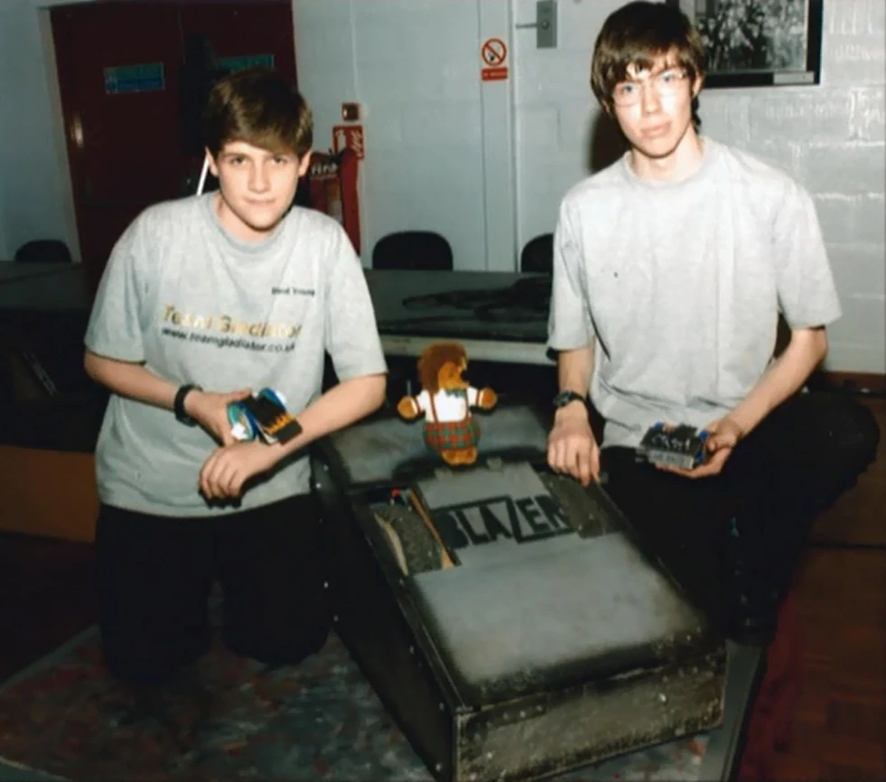 Chroma was built by Team BlazerBotics, nowadays Team MAD, consisting of the young brothers Alan and Dave Young. Whilst Dave Young entered the Antweight Championship with Hades, Chroma was controlled by the older brother Alan in its only battle. Alan Young also drove the featherweights Flybot and Alpha, and would eventually join his younger brother on the Apollo team in Series 10, having led the construction of the machine.