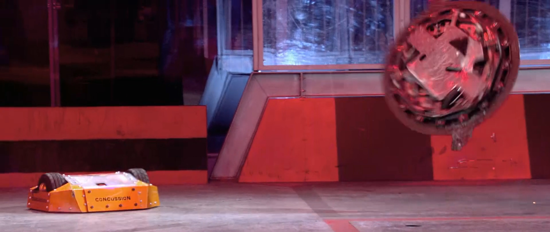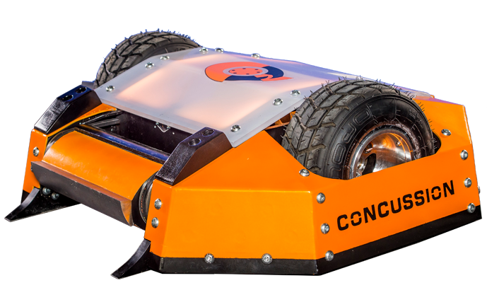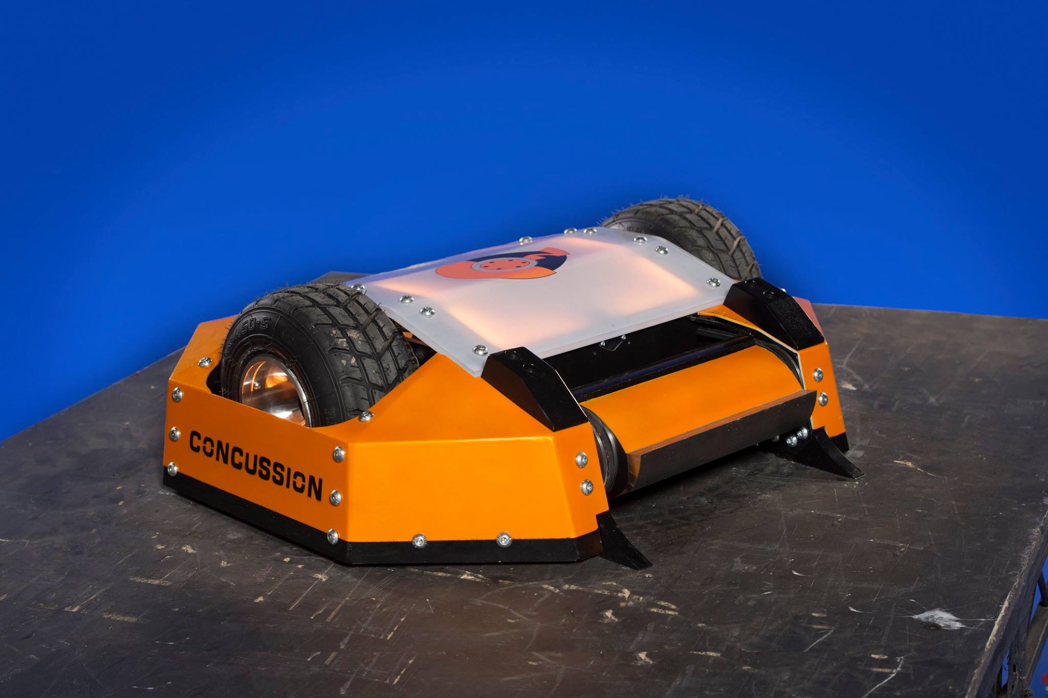 - "Concussion was designed around its 6,000rpm spinning drum weapon, machined from a single piece of hard steel for added strength and supported by a laser-cut precision-welded frame."