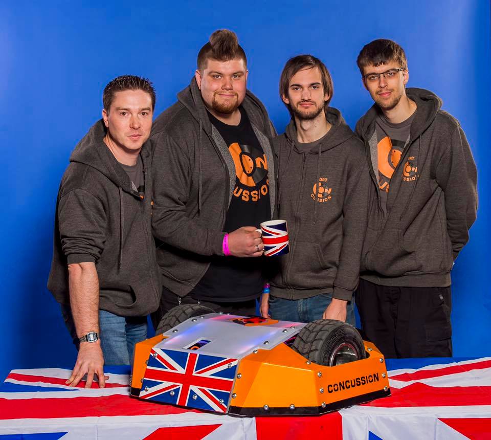 Concussion was entered by the Dorset Roboteering Team, which was founded after team members Tim Rackley and Carl Yeo attended the filming of Series 8 as audience members, and both decided to form a team from their friends and colleagues, Nick Oliver and Sam Griffin, fellow fans of the show. All four team members held a unique role on the team, creating a balanced skillset.