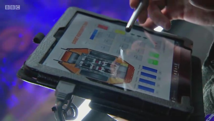 Also for Series 10, Nick Oliver installed a Wi-Fi-based telemetry system, which was used to monitor Concussion’s battery voltage and the temperature of its main components, as well as to control the robot’s LED light system.[14] This information was displayed on a tablet which the team reviewed during battle.