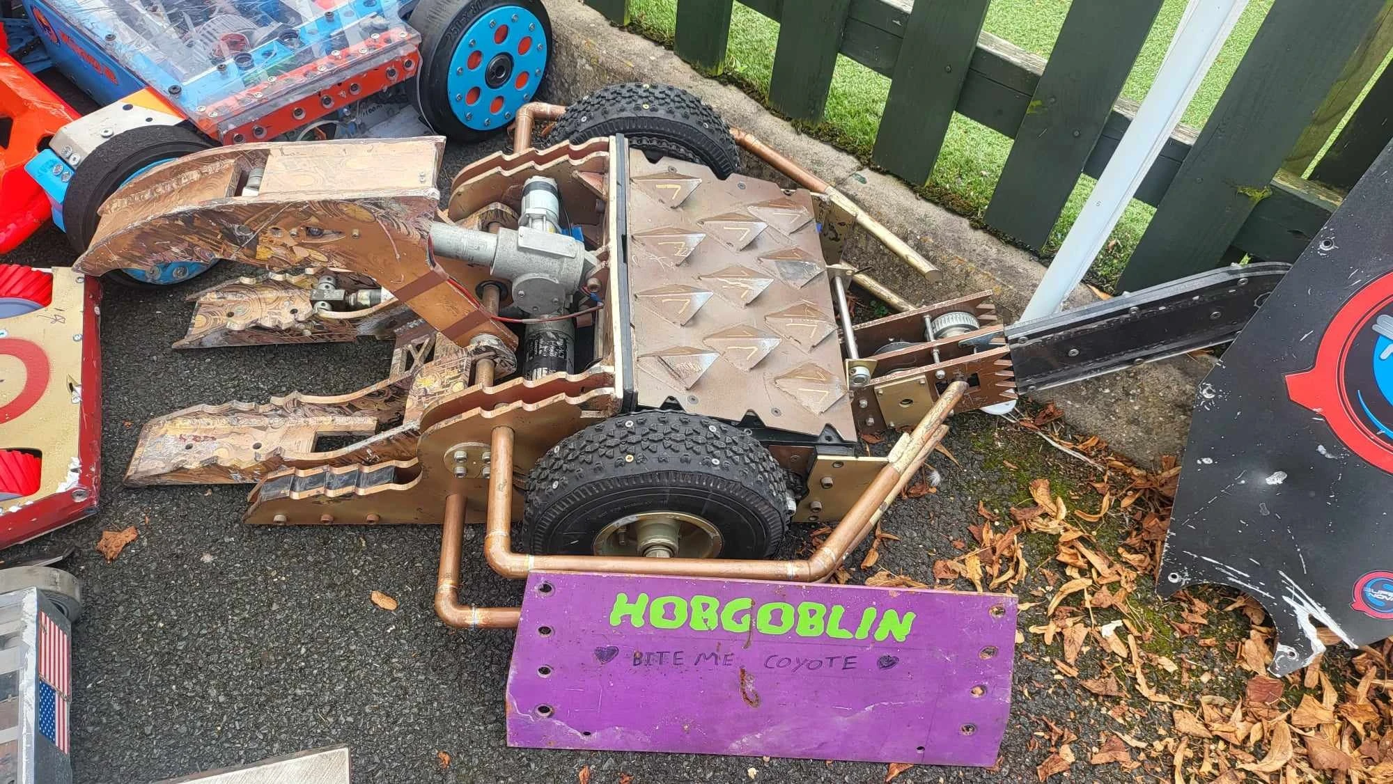- ↑ Facebook video of Donald Thump vs Coyote, RoboRiots 2023, Kinetic Energy Robotics