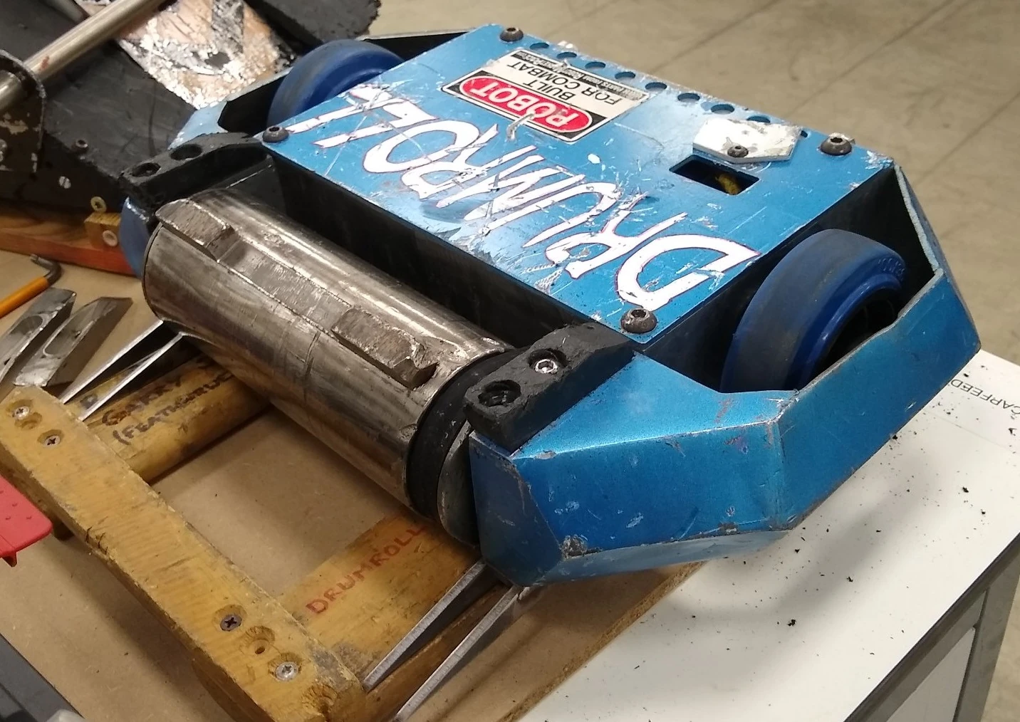 - Drumroll: Jamie's most successful featherweight, equipped with a spinning drum. Drumroll has been fighting since 2007, finishing runner-up in that year's Tag-Team Championships paired with Gary Cairns' featherweight Hornet 2, and finishing fourth in the 2009 UK Championships. Later upgraded to the invertible Drumroll 2.