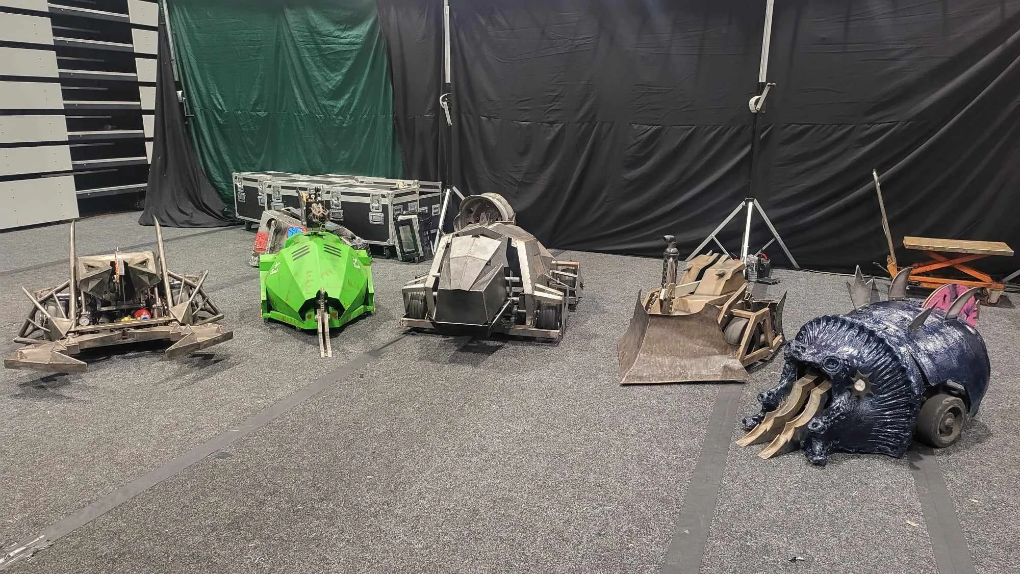 The replica House Robots at Extreme Robots Newcastle in 2023, from left-to-right: Dead Metal (Jamie McHarg), Sgt. Bash and Growler (Calum Jones), Shunt (McHarg) and Matilda (Alan Gribble, owned by John Findlay)