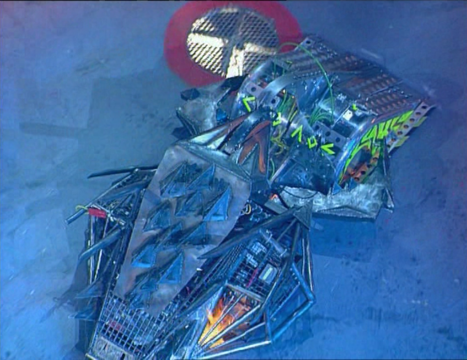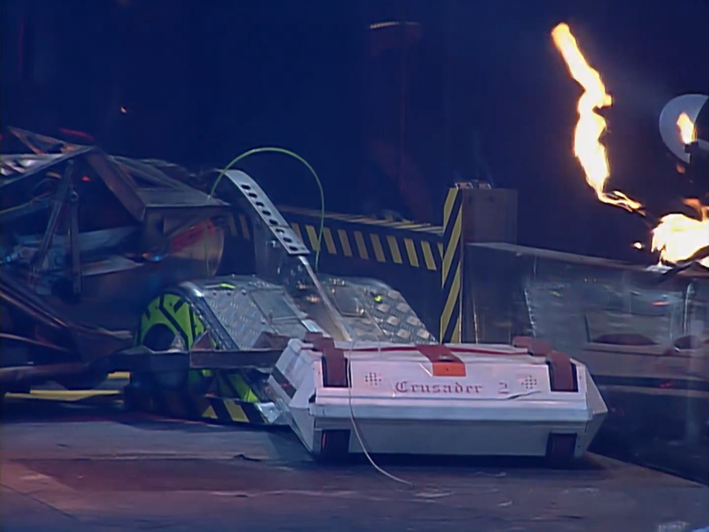 After a poor start, Steg 2 started attacking Cronos and managed to flip it over, but Cronos simply rolled back over. Cronos joined Crusader 2 in an attack on Steg 2, but was caught by Dead Metal. Crusader 2 shoved it back into the House Robot once it escaped. Cronos was unable to escape, and Sir Killalot came in and crumpled part of the front, before dropping Cronos into the Pit of Oblivion.