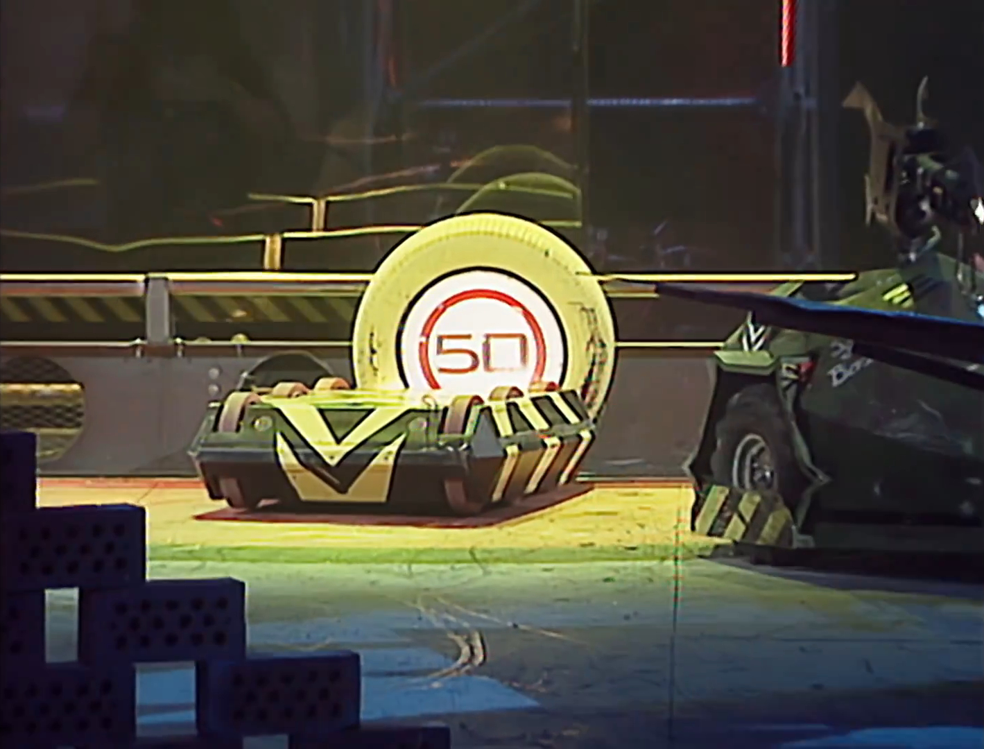 Eventually, it was freed by Sergeant Bash and hit the multiball release, scoring more points and pressing one of the balls against the latter until it exploded. However, Crusader immediately hurtled across the arena, drove close to one of the Pits and hit the wall, before abruptly ending its run by reversing itself into one of them.