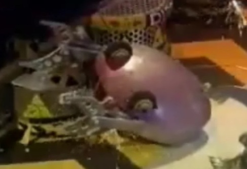 Crushtacean's aerial detaches after a flip from Wheely Big Cheese