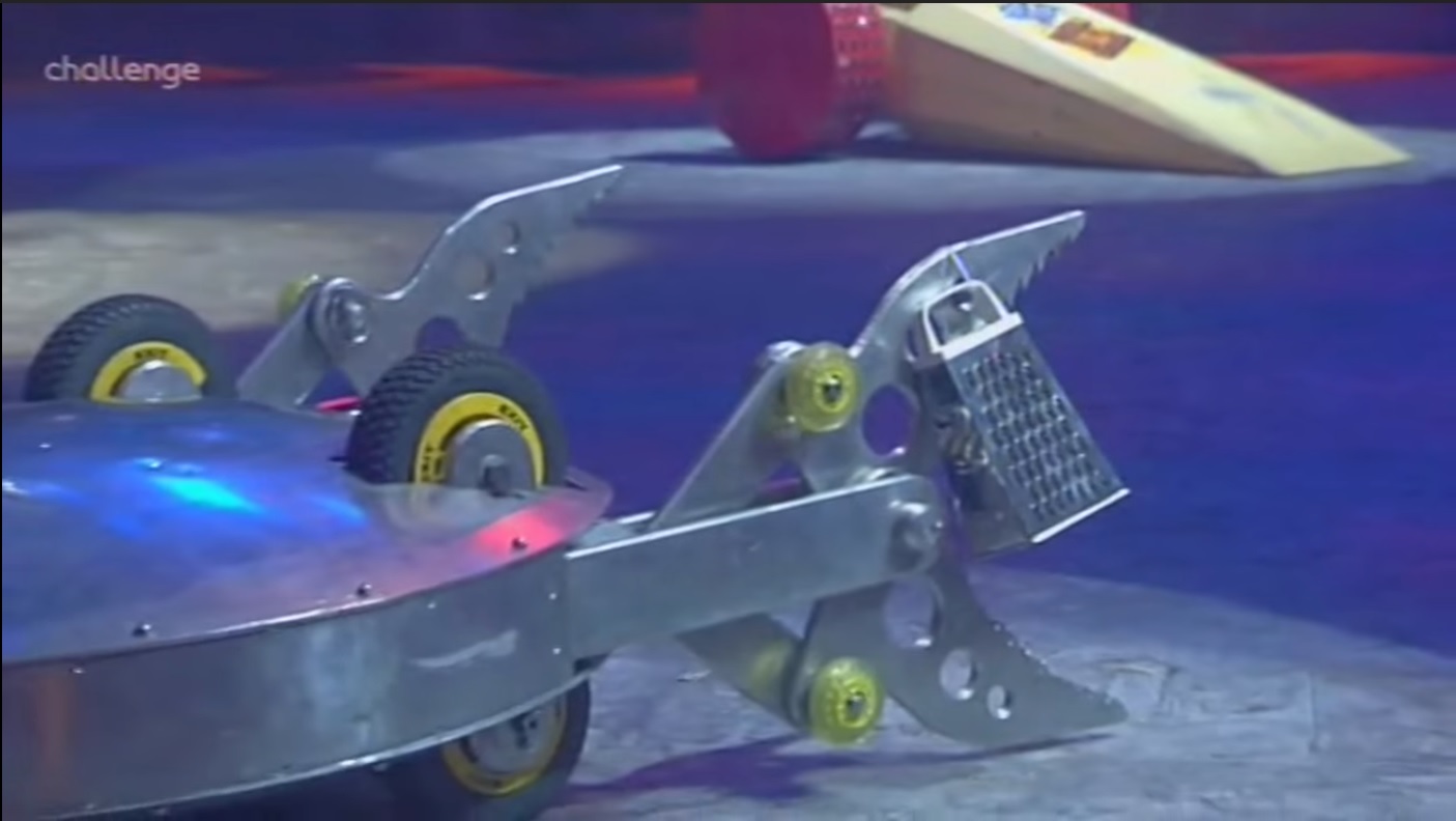 - "Only here on Robot Wars will you see a fight between three huge spinners and a crab."