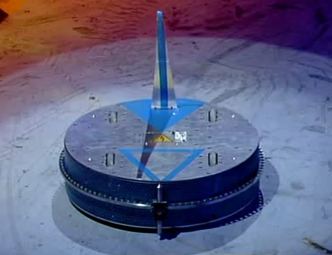 In 2003, The Delldog team would also build a second heavyweight named Horus. it was a long, blue box-shaped invertible shuffler, in a similar vain to fellow German competitor Ansgar 3. Horus would compete at the Dutch Robot Games in 2003, fighting only in non-competition rumbles against Black Hole and Snake Bite, both of which were won by the four-wheel drive pusher version of Black Hole[5].