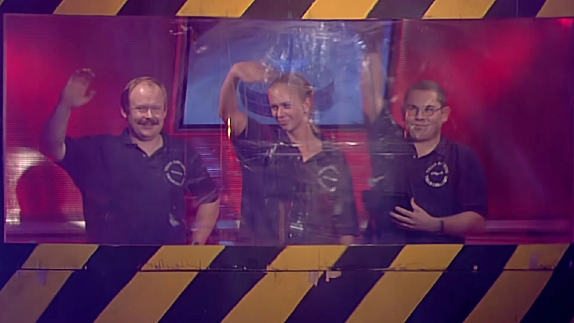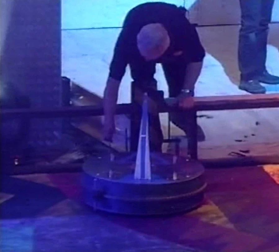 - "I to Thomas .. "test the swing ring" ... and then the shock... the swing ring didn't turn! Looking down... a safety bolt was still in the ring. Tommy and I each put one on independently and together we removed one without seeing the other. Susanne supports her from the cabin ... "STOP, HOLD ON" ... luckily Derek was standing there and canceled the start of the fight via radio. Then it got really embarrassing: ...open both garage doors ... drive the bot in and try for a minute to get the wedged bolt out. In the background you can hear the English presenters explaining our shameful act to the audience. As far as we know, there has never been a start aborted before.Tscha...there is always a first time. Later on TV we got off pretty well. Thanks to the data master and his team for the positive cut. The reality of this action was cruel!"