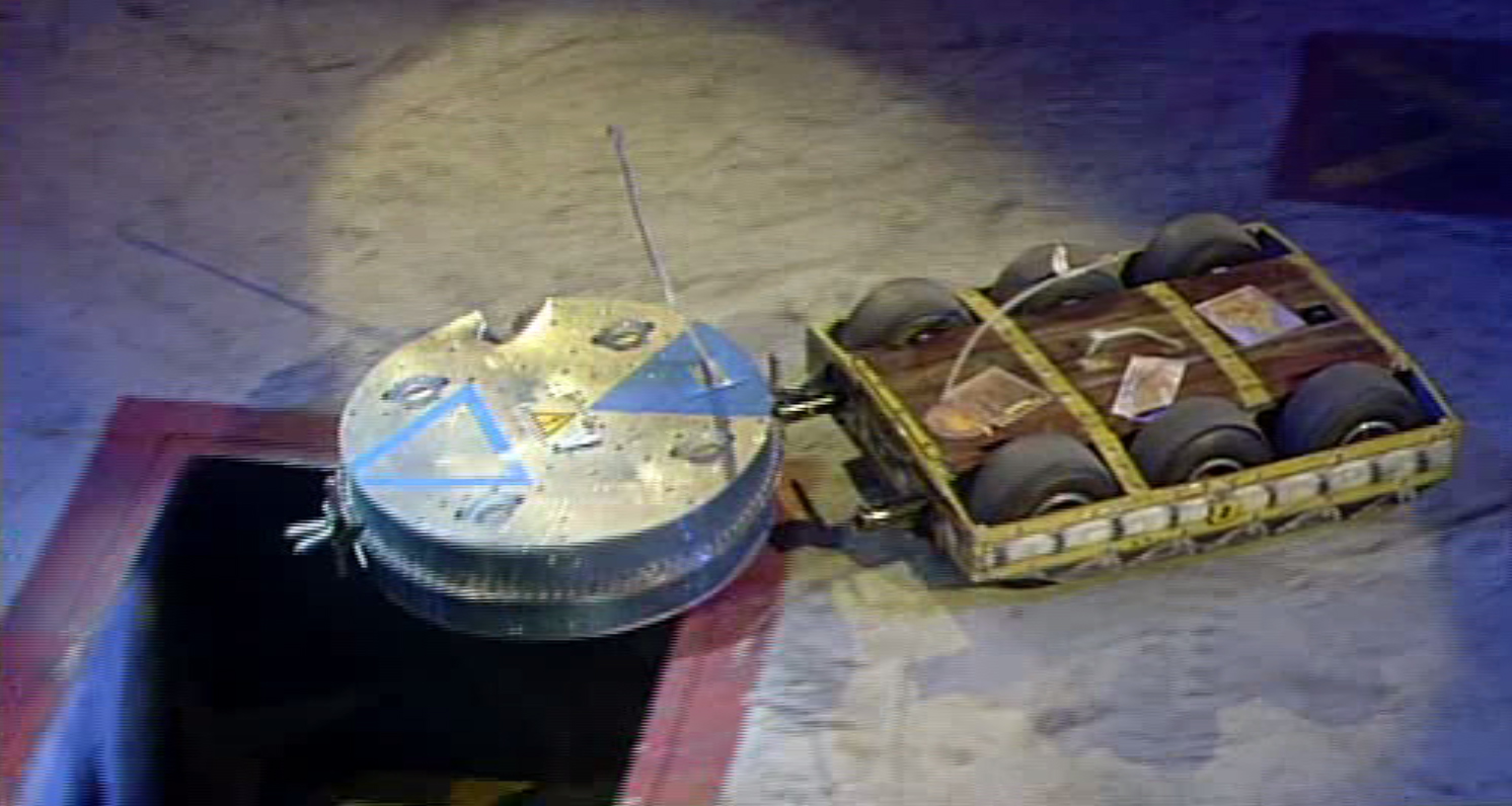 At the start of the battle, both robots collided and Das Gepäck shoved Delldog into Mr. Psycho. Delldog escaped, but then Das Gepäck pushed it into Sgt. Bash. The House Robot buried his claw into Delldog, actually lifting it up. Das Gepäck pressed the Pit release button as Mr. Psycho knocked Delldog off of Bash's claw with the hammer, then smashed it a few more times, before Refbot counted Delldog out of the competition. Once Delldog had been counted out, Das Gepäck pushed Delldog down the Pit.