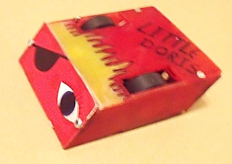 An antweight version, Little Doris, was also completed with a two-wheel drive system and a parallelogram-shaped chassis. Little Doris initially fought in Antweight World Series 37 in March 2012, winning its first battle over Oreo[6] before losing to E.B.O.G.'s Revenge[7] and Flippant 2.[8] It would also be paired up for the Tag Team event with one of Team DisConstructor's fellow antweights THRUST, but the duo lost to Fast Dalek and Wanted.[9] Two years later, Little Doris made a further appearance at Antweight World Series 40, losing its last-ever fight to another of the team's robots, ANTi Matter.[10]