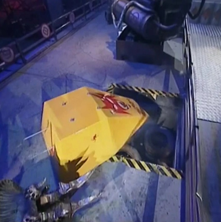 In the Gauntlet, Demon crawled out of the starting gate, and dived into the Sentinel route as the sphere came rolling past. As Demon tried to dodge The Sentinel it was pinned against it repeatedly by Matilda, sustaining damage from the chainsaw. Despite this Demon pushed Matilda towards the End Zone, before turning and being shoved perilously close to the pit. After just about escaping that, Demon turned and spun past Matilda and Sir Killalot, before eventually squeezing into the End Zone.