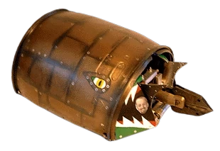 Destructosaur was a barrel shaped robot with painted on eyes and teeth giving it a resemblance of a dinosaur as its name suggests. Its main weapon was a hydraulic cutting pincer, similar to Sir Killalot's but smaller, which was capable of slicing through 8mm aluminium with ease. The robot's drive was provided by two thirty-six volt motors and a Vantec speed controller, giving it a high top speed of twenty miles an hour. It also featured a picture of a face in the mouth, though who this was has not been identified.
