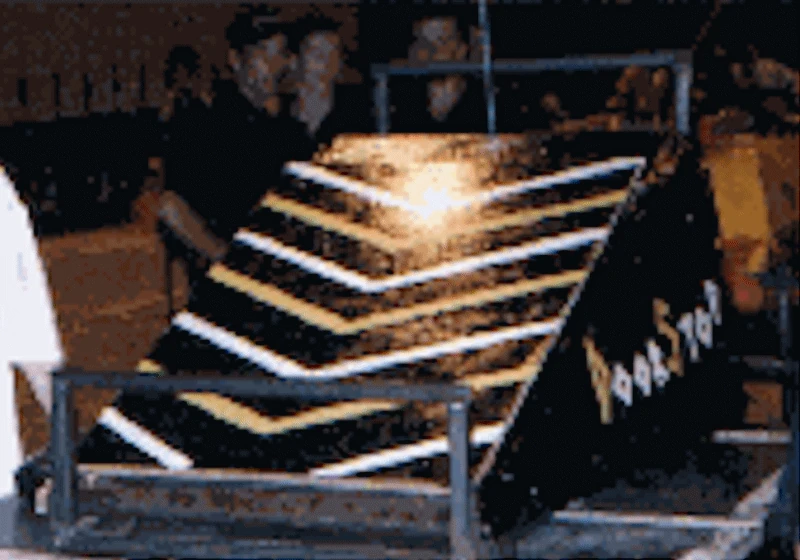 A number of photographs of DoorStop and its team members in the Pits - including one of DoorStop with Atomic 2 - confirmed that the qualifier took place during the Birmingham portion of the 2001 Live Event tour,[3][4] which was also confirmed by Tebbutt. At the qualifiers, DoorStop fought Shredder. Shredder was able to cause significant damage to the outer shell of DoorStop which would give Shredder the win and cause DoorStop to not qualify for the competition. Team DoorStop were good sports about the loss and encouraged people to check out Shredder's appearance on the show.[5] Despite the damage, most of the electronics were undamaged and thus reused by the team when making Biothan.[2]