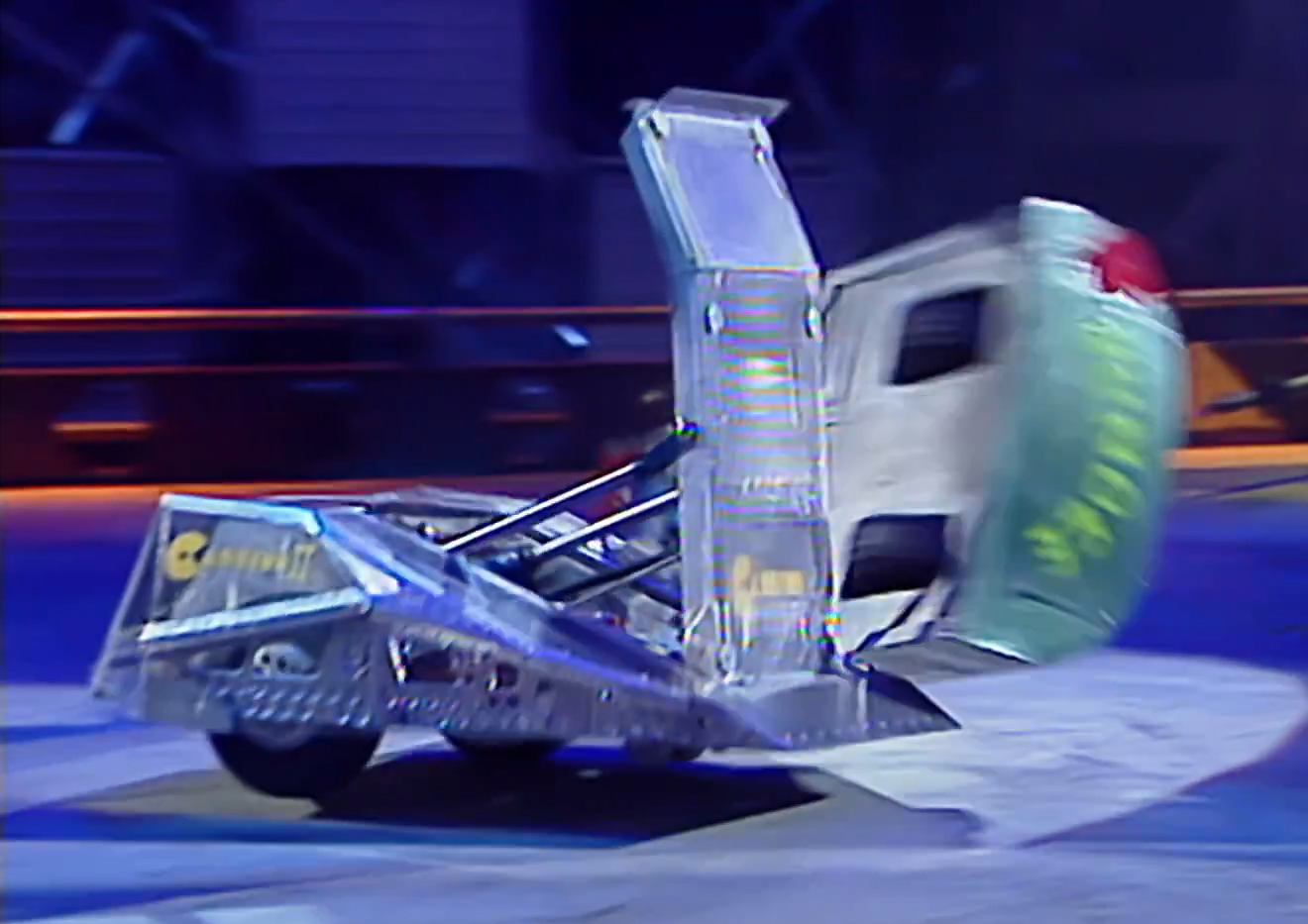 With Dundee unable to self-right, 'cease' was promptly called, and Cassius 2 celebrated its victory by attacking the House Robots. This eliminated Dundee from the Third Wars.