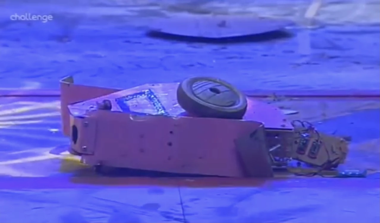 Ellie's Little Pink-Bot failed to move for the entire battle. Typhoon Thunder landed a few hits, before Refbot pushed the pink robot, causing the face spinner to fall off. Growler burnt it with his flamethrower, then it was counted out, allowing Shunt to position it on the Floor Flipper, which almost launched it out of the arena.