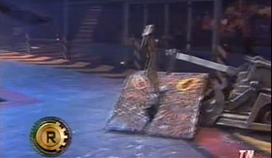 Manta got off to the faster start, and began by charging directly at the side of Tiger Cat, damaging its right side panel. As Manta reversed, Tiger Cat turned and drove erratically down the arena, turning one way then the other as it did so, then Manta rammed into its left side, dislodging the entire panel. Tiger Cat spun around onto the flame jet, and Manta charged into its front, tearing the front panel clean off. Tiger Cat turned over the flame jet, waiting for it to set the fur on fire, where its fur caught fire, and Manta struck it from the side again, almost ripping the left side panel clean off.