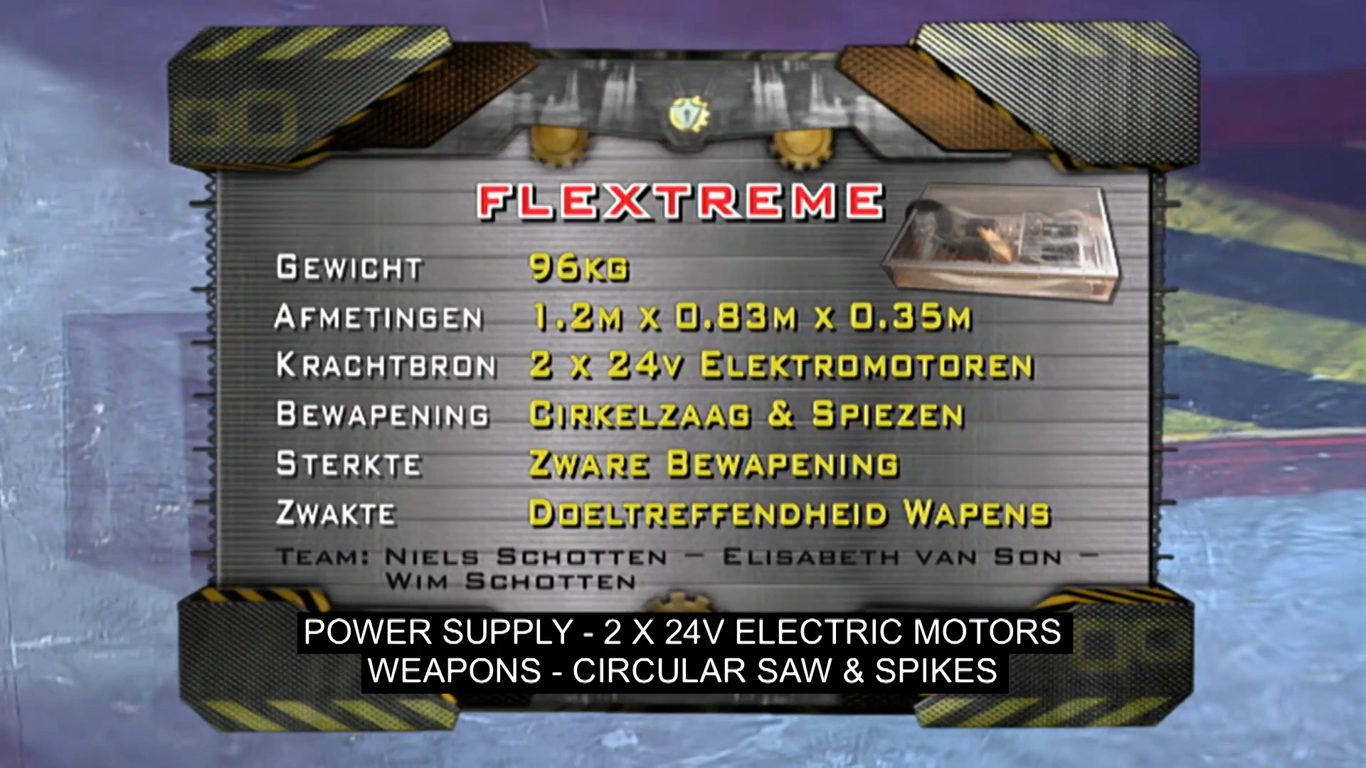 After Dutch Series 1 had been filmed, Flextreme competed in the Dutch Robot Games later in 2001. It was successful in the Dutch bracket, avenging its televised loss to Enderbot and reaching the final by beating Arena Killer before finally losing to Alien Destructor for a second-place finish[1]. It also fought in two rumbles outside of the main competition, losing both to Dantomkia and The Lethal Swan.