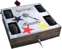 German Hammer was an invertible, box-shaped robot painted grey and featuring four-wheel drive. Its main weapon was a cutting drill similar to the one used on Niterider, which proved fairly ineffective in its qualifier, serving mainly to bypass the active weapon rule required for all Seventh Wars competitors. Otherwise, the robot focused purely on ramming with its static spike. It had three stars painted on it, each in one of the colours of the German flag.