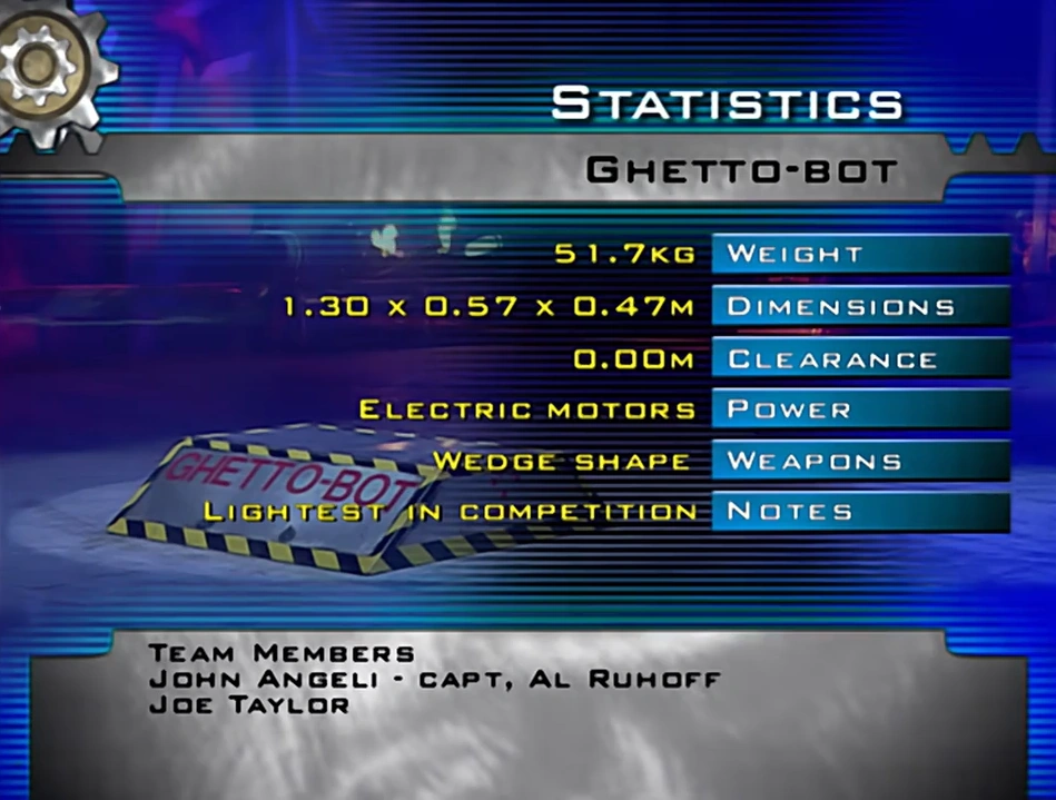 - At 51.7kg, Ghetto-bot was the lightest competitor in the Series 4 War of Independence; some 0.8kg lighter than Detonator's original weight in Series 1.