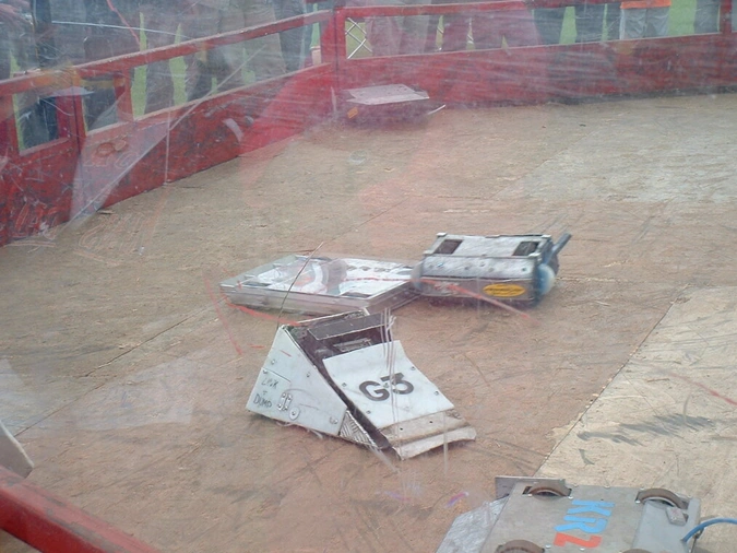 G3 was also due to compete in the featherweight division of the FRA World Championship 2004 in Northampton, which its team were helping to organise. G3 was drawn into the same heat as Venom, Morpheus, Cutlet and Typhoon Cadet.[1] Ultimately however, the event was cancelled last minute. G3 instead competed at a stand-in Roaming Robots event in Northampton over the same dates, alongside the team's fellow featherweight Alpha.
