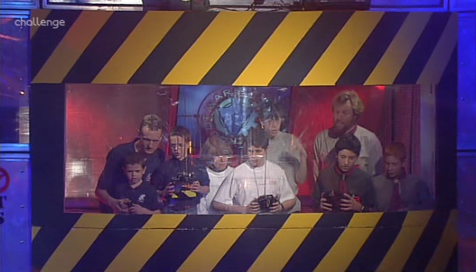 Gladiator was built by Team BlazerBotics, nowadays Team MAD, consisting of the young brothers Dave and Alan Young. Whilst Alan Young entered the Featherweight Championships of Extreme 2 and Series 7 with separate robots, Gladiator was controlled by the younger brother Dave in both of its appearances. In Extreme 2, older brother Alan also joined the team for the Final, after his robot Flybot had already been knocked out in the first round. A female team member, presumed to be a family member, was also present in the booth for this fight. Dave Young also drove the antweight Hades, and would later become a Robot Wars champion, after driving Apollo to success in Series 8.