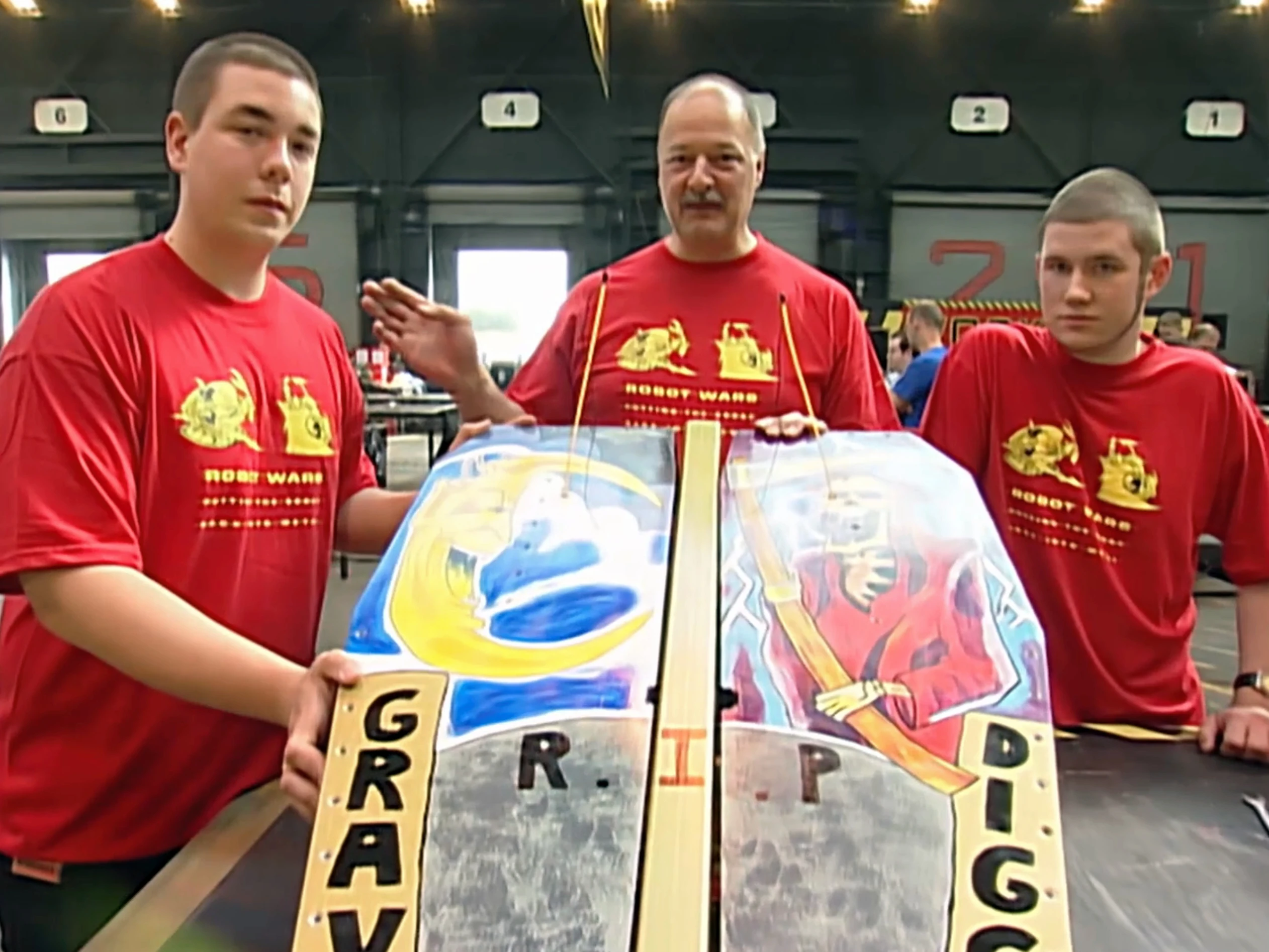 - "And Gravedigger's on its side! Gravedigger, the seeded robot, in major, major trouble here, it was Thermidor doing the damage... Gravedigger could be in a coffin here."