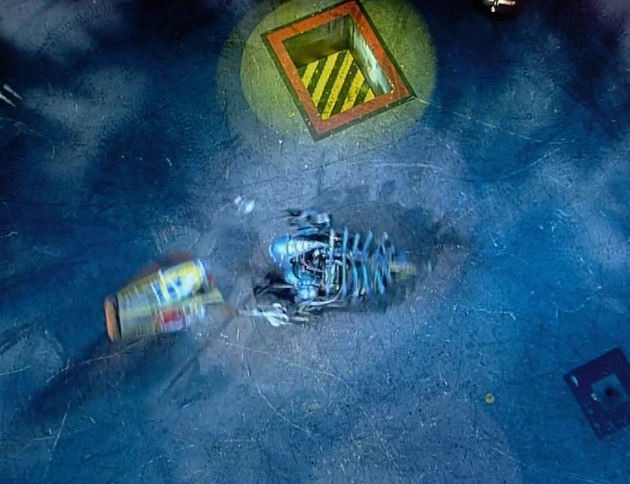 As Gravedigger attempted to flip The Darke Destroyer into Shunt's CPZ, an arena spike threw The Darke Destroyer over instead, rendering it immobile. Gravedigger then backed off for Shunt to axe the defeated machine, and Dead Metal also came in to slice The Darke Destroyer. Gravedigger then decided to shove around Sgt. Bash, as it exited its CPZ, but little was done to either machine. 'Cease' was eventually called and Gravedigger was declared the winner, putting it through to the Semi-Finals.
