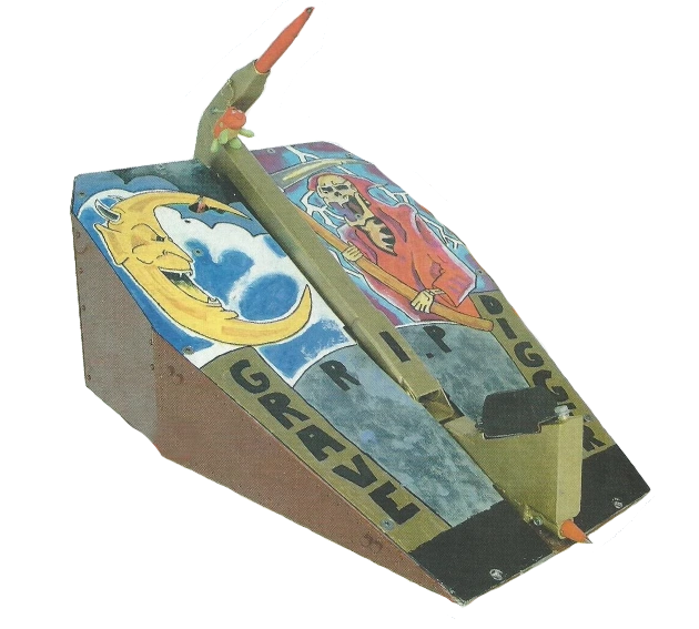 Gravedigger was a competitor robot that fought in Series 3, 4 and 5 of Robot Wars. It reached the Semi-Finals in Series 3, famously defeating Mortis in its heat, but did not enjoy great success thereafter, being eliminated in the first round in both Series 4 and 5 by Thermidor 2 and Tornado respectively.