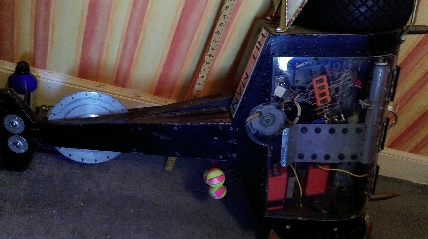 Hit Man was powered by 3x Bosch 750 Watt motors, one powering the circular saw, while the others powered the drive. Originally Hit Man was painted blue, but was soon repainted black.