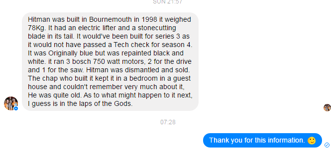 After Series 4, Hit Man remained inactive before being dismantled and sold in 2016. Hit Man became owned by Team Legion.