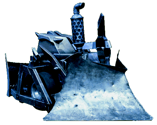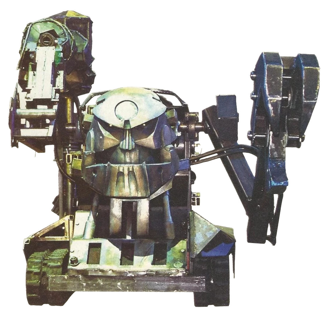 The first of the four original House Robots to be introduced, Shunt was influenced by bulldozers and railway shunting engines, possessing excellent pulling and pushing power befitting of his name. His arsenal included a snowplough and scoop at either end (the latter pneumatically-operated from Series 2 onwards), along with an axe, which by Series 3 had been upgraded with a diamond-edged head and a striking force of 500kg per square centimetre. Shunt was initially designed for and frequently used in the Sumo Trial, though at times he would face strong opposition from competitors such as Panic Attack in those events.