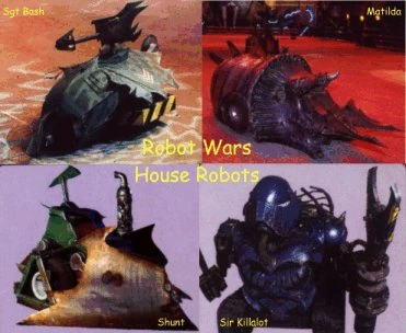 Official replicas of the core Series 1-5 House Robots - Shunt, Dead Metal, Matilda, Sgt. Bash and Sir Killalot - were produced during the original run, which were primarily displayed in The Pits in later series as part of exhibitions accessible to audience members. These primarily differed from their arena-ready counterparts in having no drive systems or damaging weaponry. While the majority of weapons on these replicas were unpowered, the Matilda replica incorporated moving mechanisms to raise and lower the chainsaw and tusks at slow speed. Changes specific to the Sir Killalot replica included curved rear exo-armour not used in its functional counterparts, as well as a bladed tip for the lance arm.[24]