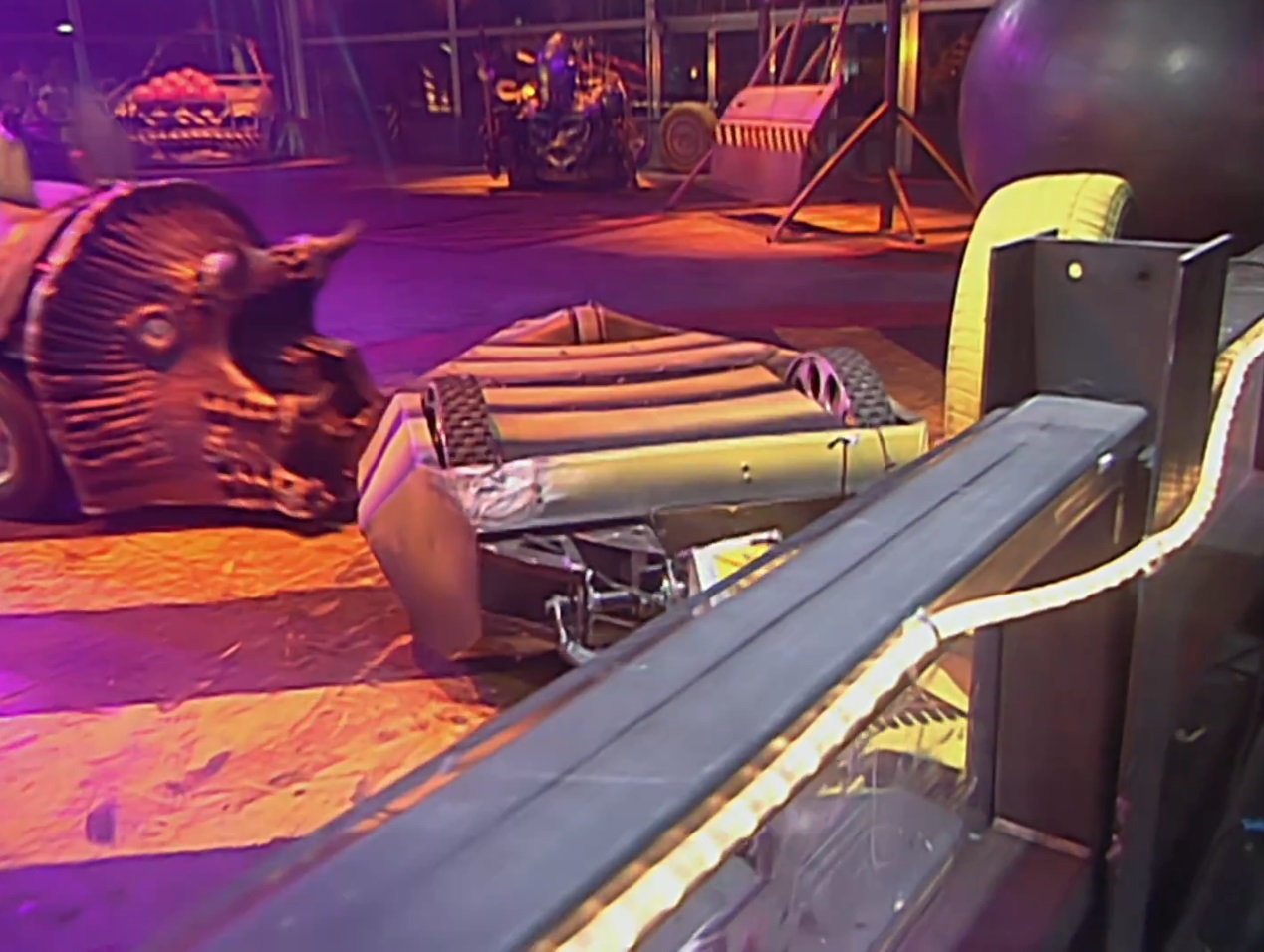 Invertabrat reversed towards Matilda once more, with one of Matilda's tusks falling off as the House Robot attacked. Her shell popped up as well, but fell back into place shortly after. Matilda pushed Invertabrat and flicked it with her tusks. Invertabrat was still struggling to move, so Dead Metal came in and sliced into it, confirming Beast of Bodmin as the winner.