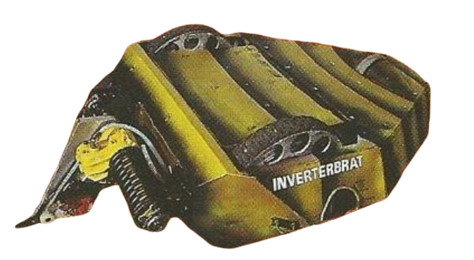The name Inverterbrat references 'invertebrate', the scientific term given to a creature without a backbone. When questioned about the origin of the name, the team revealed that the actual inspiration for the name was the robot being invertible, and its main tactic of inverting opponents; something it never succeeded in doing.