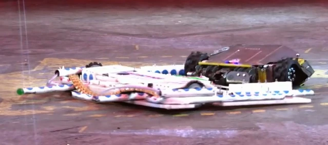 Jellyfish, assisted by Team Nuts, needed to find the damage caused by Terrorhurtz, which was not immediately obvious. Once this repair was made by installing a spare speed controller offered by Team RPD, Jellyfish was ready to battle Sabretooth in its second - and last - Head-to-Head.